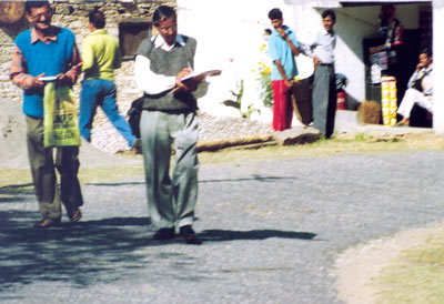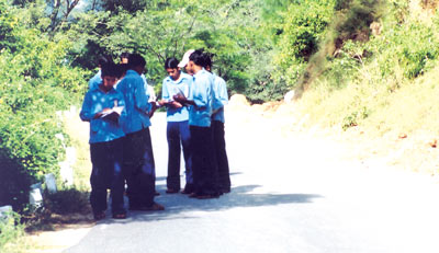 நாங்கள் எடுத்து வந்த தேவனுடைய பிரசுரங்கள் எல்லாம் மக்களுக்குக் கொடுத்து தீர்ந்துவிட்டபடியால் 80 கி.மீ. தொலைவிலுள்ள அல்மோரா பட்டணம் சென்று அங்குள்ள குஷ்டரோக மருத்துவமனையில் நாங்கள் விட்டு வந்த தேவனுடைய பிரசுரங்களை எங்களுடைய வாகனங்களை அனுப்பி எடுத்து வந்தோம். |