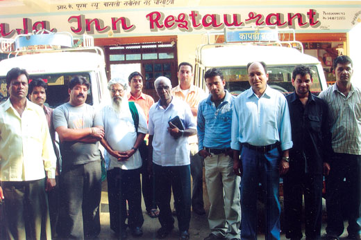 நாங்கள் துவாராகாட் என்ற இடத்திலிருந்து சுமார் 18 கி.மீ. தொலைவிலுள்ள சவுக்குட்டியா என்ற இடத்திற்கு வந்து தங்கி அங்கிருந்து சுற்றியுள்ள அநேகக் கிராமங்களில் தேவனுடைய பிரசுரங்களைக் கொடுத்து ஊழியம் செய்தோம். துவராகாட்டிலிருந்து சவுக்குட்டியா செல்லும் பாதை முற்றும் இறங்குமுகமாகவே இருந்தது. இந்த இடத்தை கனாயி என்றும் அழைக்கின்றனர். கர்த்தருடைய கிருபையால் நாங்கள் வசதியாக தங்கியிருந்து ஊழியம் செய்ய அனுகூலமாக ஒரு நல்ல லாட்ஜ் பட்டணத்தின் ஆரம்பத்திலிலேயே எங்களுக்கு கிடைத்து கொண்டது. எங்கள் வாகனங்களையும் நாங்கள் பாதுகாப்பாக நிறுத்த லாட்ஜ்க்கு முன்பாக இடம் கொடுத்தார்கள். நாங்கள் எல்லாரும் வசதியாக மூன்று அறைகளில் தங்கிக் கொண்டோம். காலையில் நாங்கள் குளிப்பதற்கு நல்ல வெந்நீர் கொடுத்தார்கள். எங்கள் விருப்பம்போல எங்களுக்கு ஆகாரம் செய்து தந்தார்கள். நாங்களும் எங்கள் ஊழியங்கள் முடித்து லாட்ஜ் திரும்பியதும் நல்ல புதிதான காய்கறிகளை கடை வீதிக்குச் சென்று சமையல்காரருக்கு வாங்கிக் கொடுத்தோம். லாட்ஜ்ஜின் பணியாளர்களும் நாங்கள் எல்லாரும் ஒரே குடும்பத்தின் பிள்ளைகளைப்போல நடந்து கொண்டோம். அவர்கள் எங்களுக்குப் பாராட்டிய அன்பு மிகவும் அதிகமாகும். லாட்ஜ்ஜின் பணியாளர்கள் மூவரும் நாங்கள் எல்லாரும் சேர்ந்து எடுத்துக் கொண்ட படத்தை நீங்கள் காண்பீர்கள்.