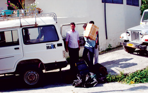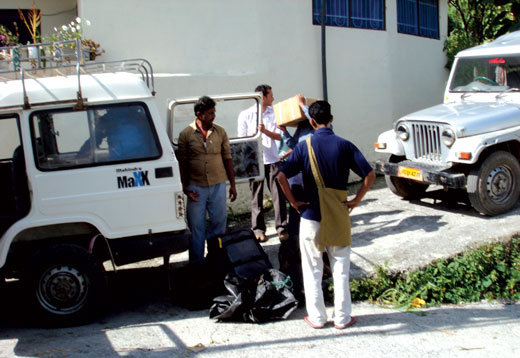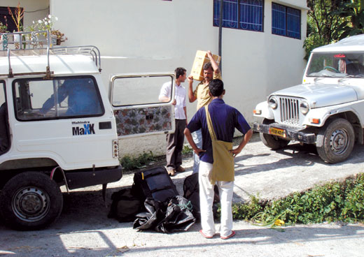 ஊழியத்திற்காக ஏற்றிக் கொண்டோம். பெட்டிகள் எங்கள் வாகனங்களில் ஏற்றப்படுவதை